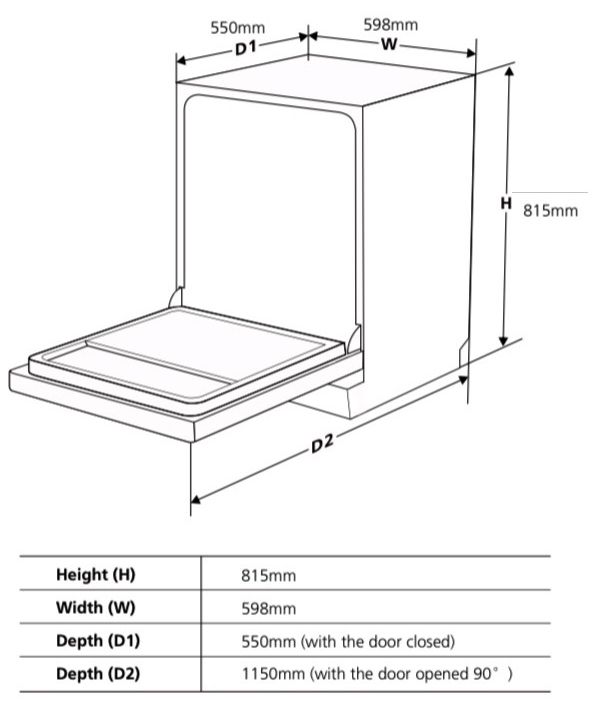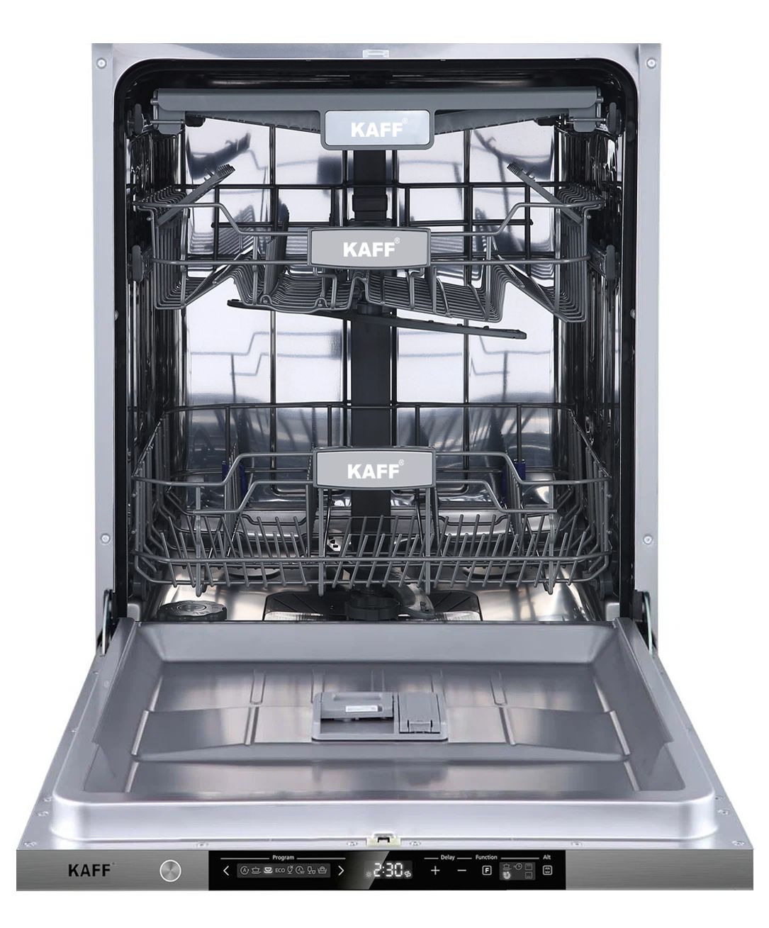 Máy rửa bát Kaff KF-BISW12 được thiết kế dạng âm toàn phần nên cần phải đảm bảo diện tích khoang tủ lớn hơn kích thước của máy, để dễ dàng sử dụng và vệ sinh.