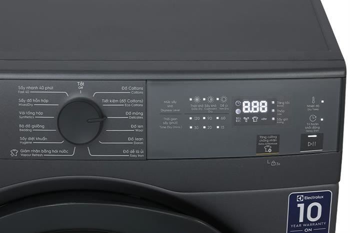 Bảng điều khiển thông minh với chỉ dẫn song ngữ tiếng Anh và tiếng Việt, dễ sử dụng. Núm vặn chọn chương trình kết hợp với cảm ứng và màn hình LED giúp bạn dễ dàng thao tác.
