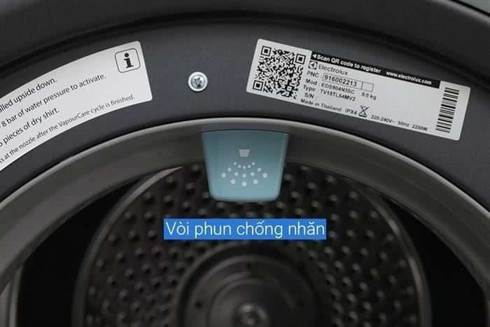 Công nghệ sấy ReverseTumbling đảo chiều chống nhăn quần áoMáy sấy thông hơi 9kg Electrolux EDS904N3SC được trang bị công nghệ sấy đảo chiều ReverseTumbling, với chuyển động lồng sấy đảo chiều luân phiên, giúp quần áo không bị xoắn rối trong quá trình sấy. Nhờ vào công nghệ này, quần áo giảm thiểu nếp nhăn, giúp bạn dễ dàng là ủi sau khi sấy, đồng thời giữ cho trang phục luôn phẳng phiu và mềm mại.
