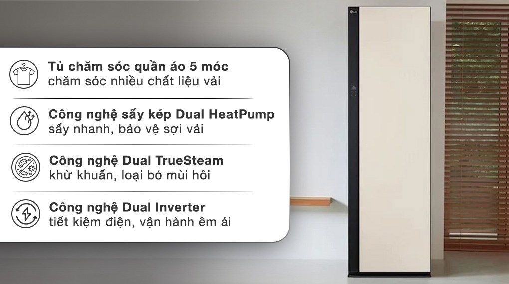 Công nghệ Dual TrueSteam có khả năng nhận diện được từng loại vải khác nhau, từ đó đưa ra lượng hơi nước phù hợp nhất để làm sạch. Hiệu quả hoạt động có thể khử khuẩn lên đến 99% và loại bỏ được hoàn toàn mùi hôi khó chịu.