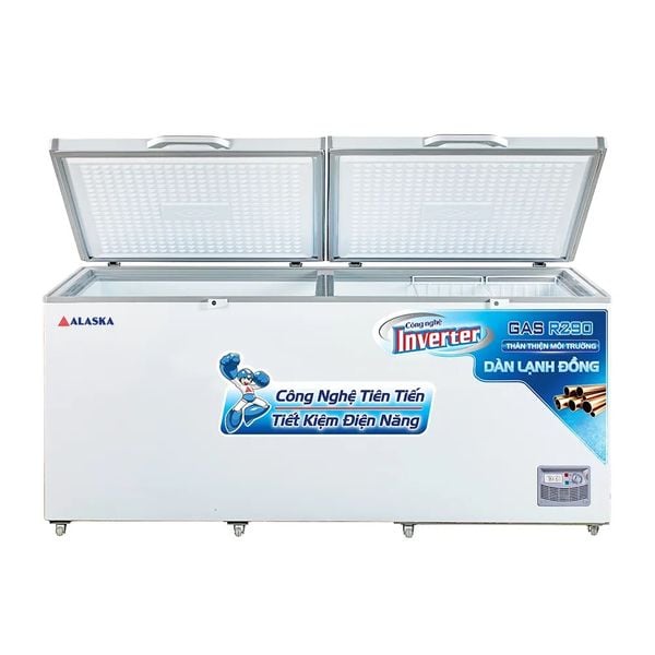 Tủ đông Alaska HB-1200CI inverter sử dụng công nghệ làm lạnh bằng compressor, gas sử dụng cho máy nén là loại gas R290 thân thiện với môi trường, tủ có bánh xe chịu lực và di chuyển dễ dàng.