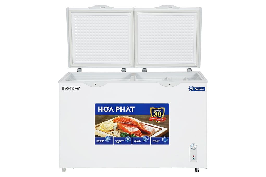 Công nghệ Inverter: Có khả năng điều chỉnh vòng quay máy nén để duy trì nhiệt độ tối ưu bên trong tủ, giúp tủ vận hành êm ái và mang lại hiệu quả tiết kiệm điện tối ưu trong suốt thời gian tủ đông Hòa Phát 352 lít hoạt động.