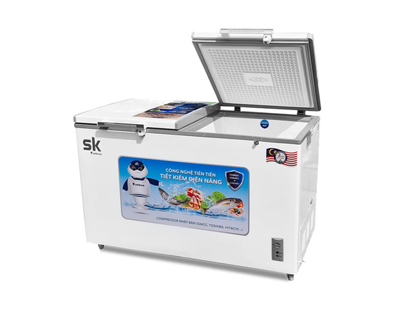 Tủ đông hãng Sumikura được trang bị dàn lạnh bằng đồng 100%. Nhờ vậy mà tủ có khả năng làm lạnh nhanh và sâu. Không những thế, nhiệt độ thấp còn được duy trì lâu hơn, ổn định. Bạn có thể hoàn toàn yên tâm khi bảo quản các loại thực phẩm như hải sản, thịt, cá trong tủ.