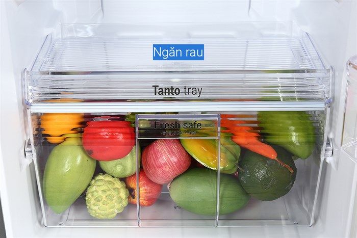 Tủ lạnh còn có ngăn rau củ Fresh Safe sẽ cung cấp nhiệt độ và độ ẩm ở trạng thái lý tưởng với rau củ nhờ thiết kế đóng kín, giúp khí lạnh không thổi trực tiếp lên thực phẩm. Nhờ vậy mà rau củ luôn tươi ngon và có dộ ẩm.