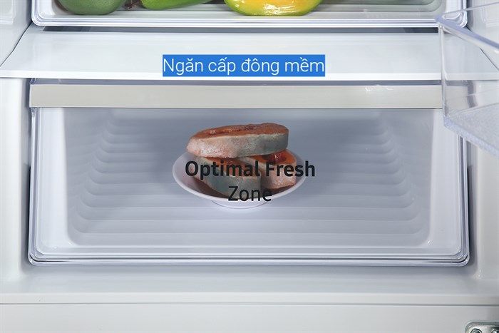 Tủ lạnh Samsung Inverter có ngăn đông mềm Optimal Fresh Zone được thiết kế riêng biệt dạng ngăn kéo với nhiệt độ chuẩn -1 độ C, phù hợp bảo quản thực phẩm tươi sống và không làm đông đá, đảm bảo dưỡng chất của thực phẩm. Đồng thời, người dùng không tốn thời gian rã đông mà có thể lấy ra chế biến ngay khi cần.