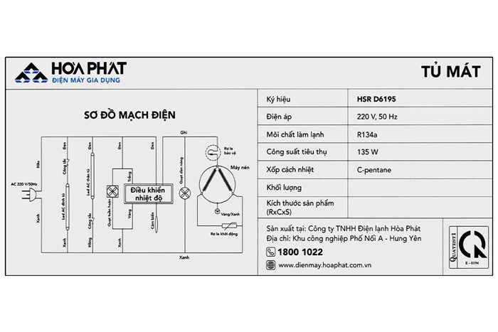 – Mẫu tủ mát Hoà Phát này trang bị môi chất làm lạnh gas R134a được dùng phổ biến cho các thiết bị làm lạnh, đảm bảo hiệu quả làm lạnh tối ưu.