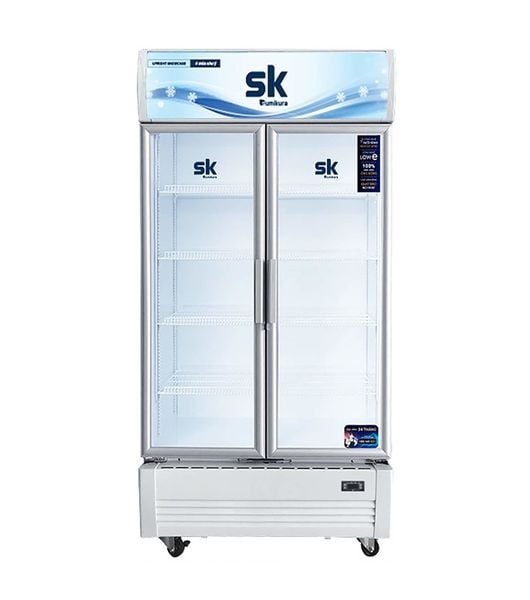 Tủ mát Sumikura có thiết kế 2 cánh sang trọng, phía bên trong tủ được bao phủ bởi lớp nhựa ABS màu trắng sáng. Nhờ vậy, tủ sẽ tạo cảm giác sạch sẽ, hợp vệ sinh, phù hợp cho nhu cầu bảo quản thực phẩm. Với thiết kế bắt mắt của dòng sản phẩm, bạn có thể dễ dàng trưng bày trong bất kỳ không gian nào. Không chỉ có vậy, lòng tủ có khả năng chịu va đập cao. Cánh cửa tủ được thiết kế từ kính trong suốt chịu lực 2 lớp, ở giữ hút chân không giúp bạn dễ dàng quan sát, lấy và sắp xếp thực phẩm. Tay cầm có thiết kế chìm chắc chắn, tiết kiệm diện tích. Thiết kế sần nhẹ chống trơn trượt, cửa mở ra đóng vào dễ dàng hơn. Hệ thống đèn LED được trang bị làm nổi bật không gian phía trong tủ, phù hợp với việc trưng bày thực phẩm tại các cửa hàng, siêu thị.