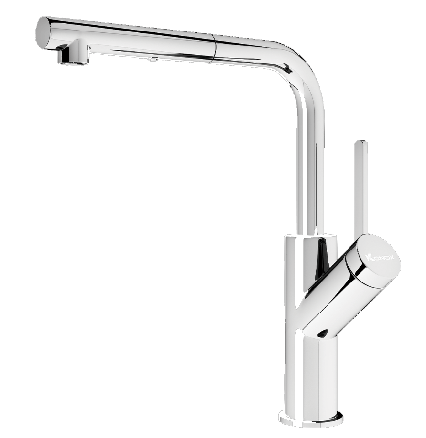 • Đầu vòi kéo dây mở rộng phạm vi làm việc lên đến 76cm
