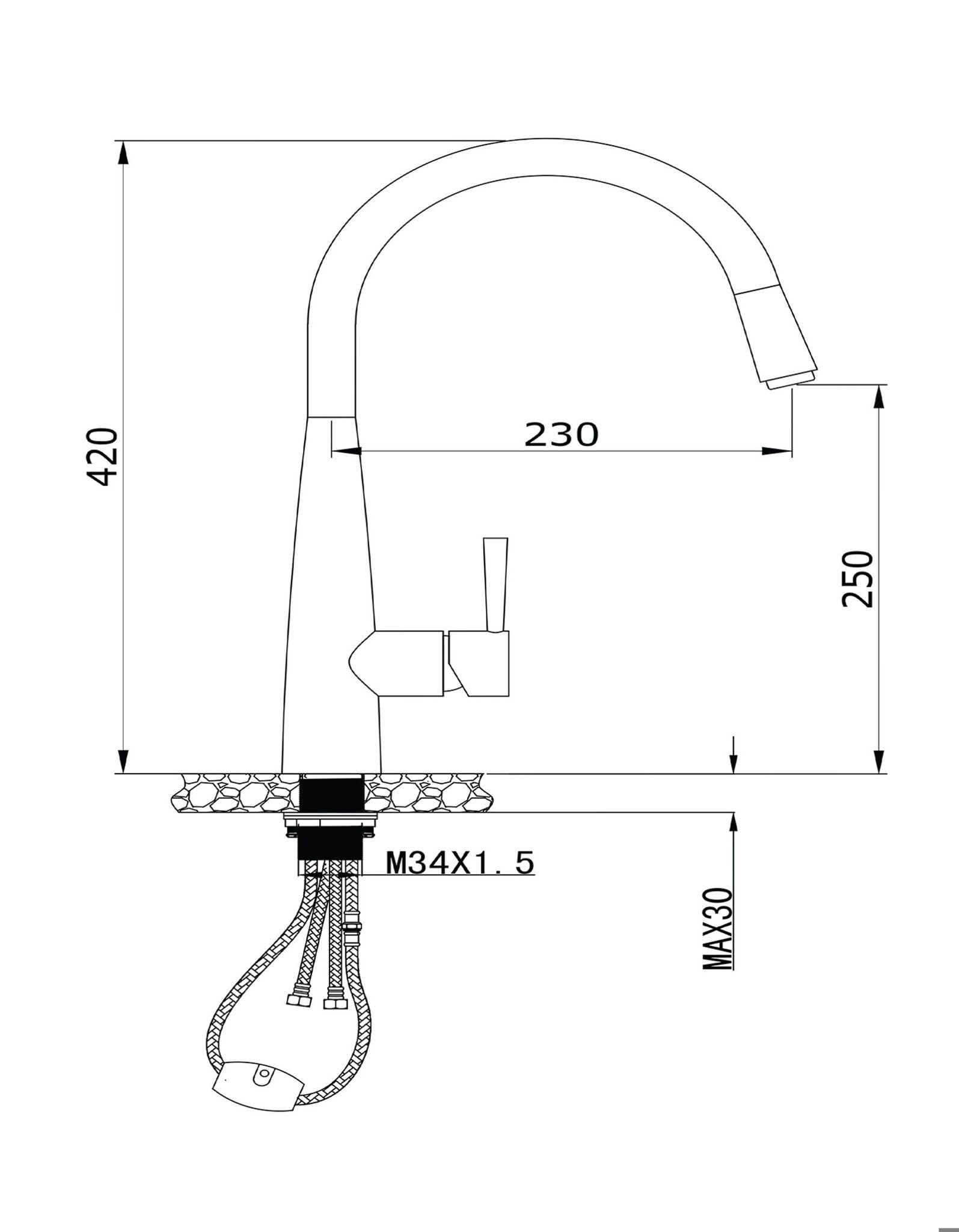 • Đầu vòi kéo dây mở rộng phạm vi làm việc lên đến 76cm