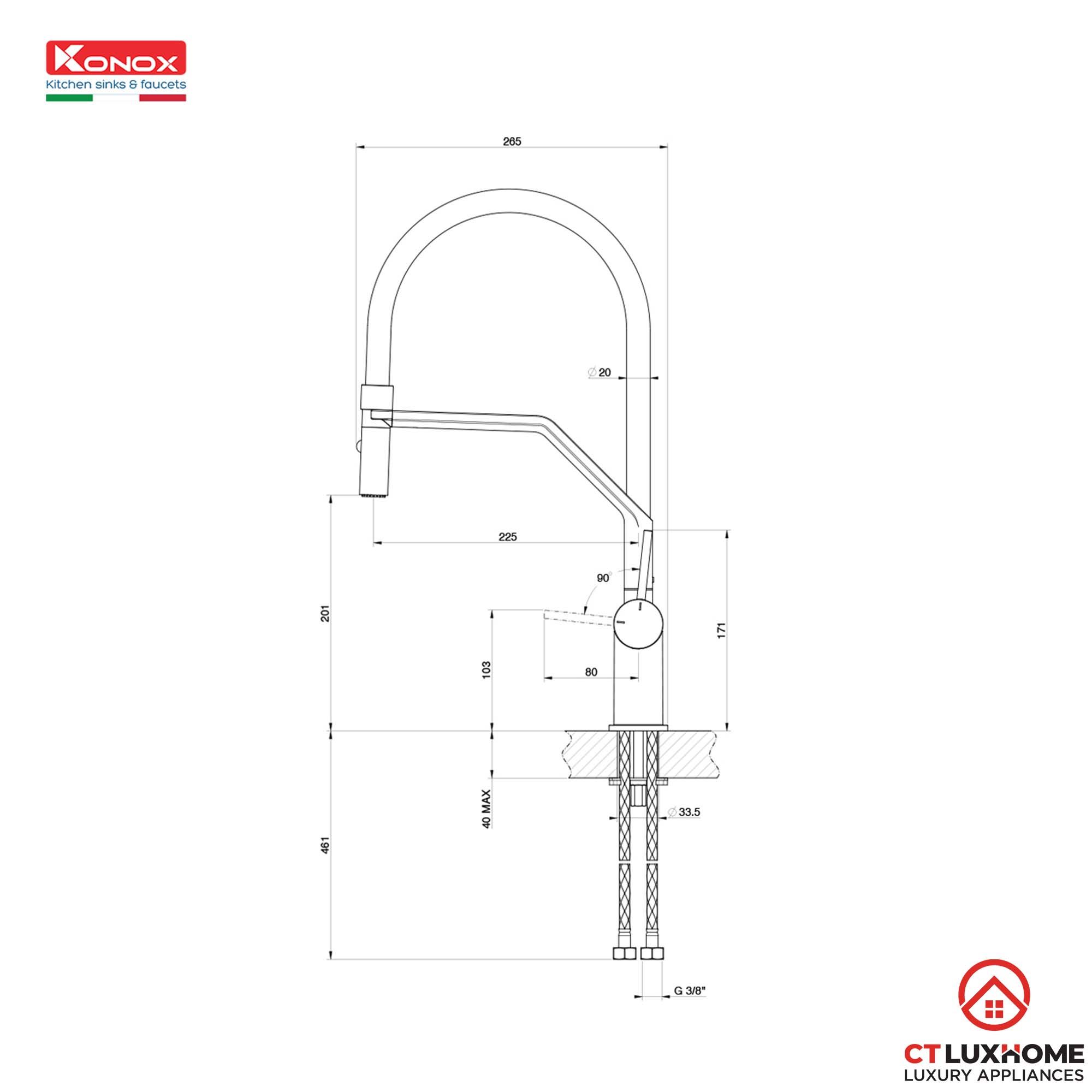 Vòi rửa bát Konox Rosso là một sản phẩm xuất sắc kết hợp giữa thiết kế tinh tế và công nghệ tiết kiệm nước hiện đại, mang đến cho không gian bếp của bạn sự tiện nghi và sang trọng. Được sản xuất tại Ý, vòi rửa Konox Rosso không chỉ là một thiết bị chức năng mà còn là một tác phẩm nghệ thuật, thể hiện sự thẩm mỹ và sự chăm sóc kỹ lưỡng đến từng chi tiết.