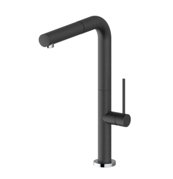Bề mặt vòi rửa chén Furst F400076CV được mạ lớp đá mịn màu đen mang đến sự sang trọng cho căn bếp.